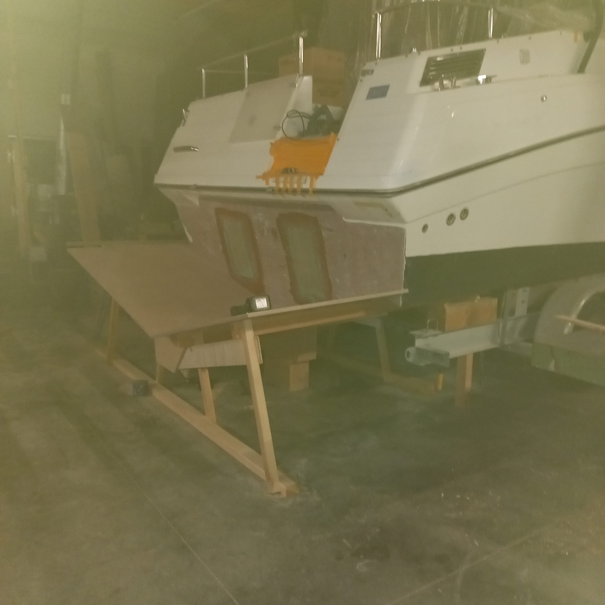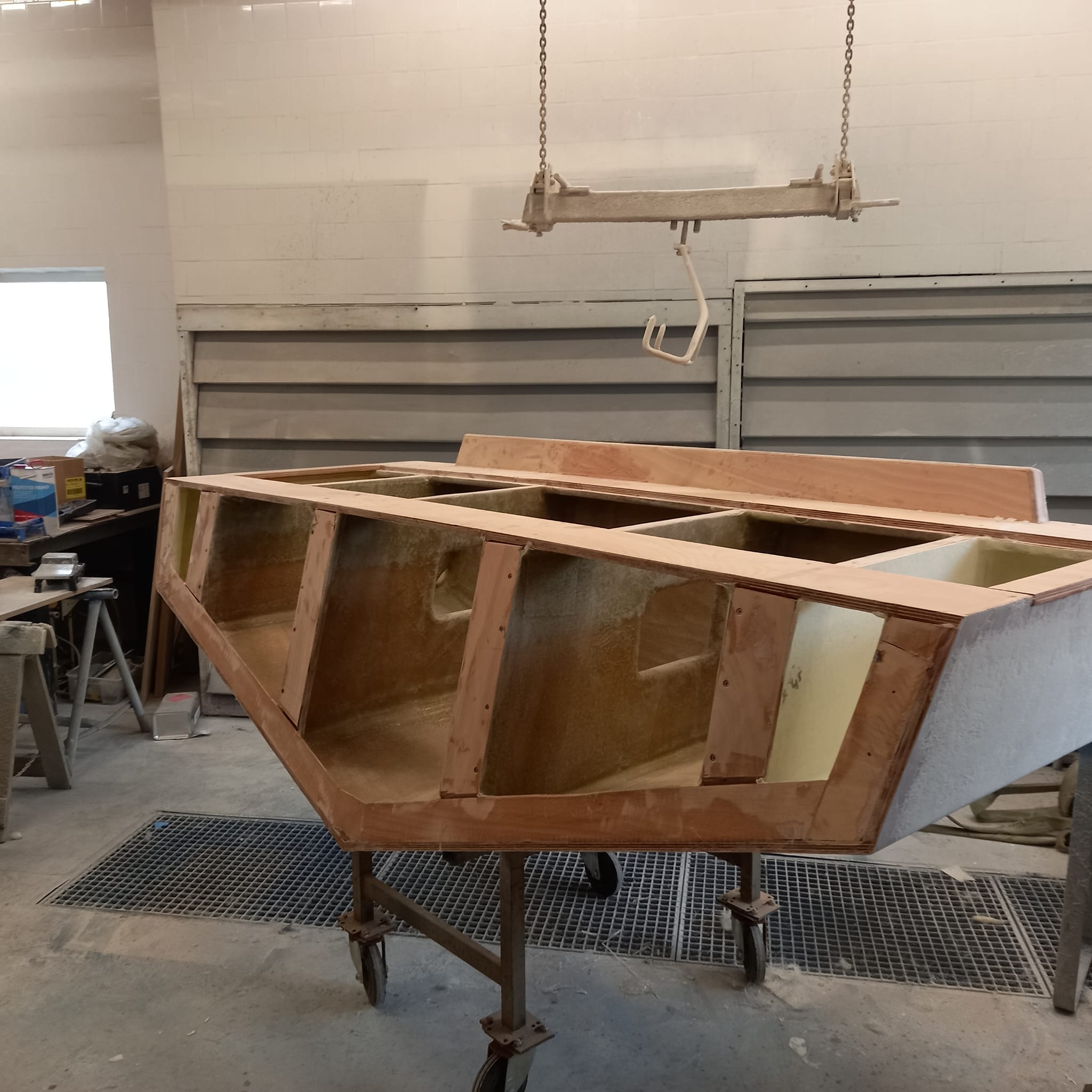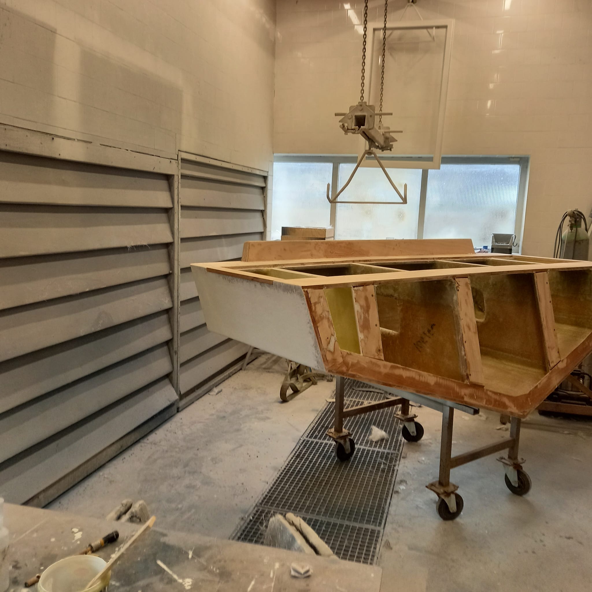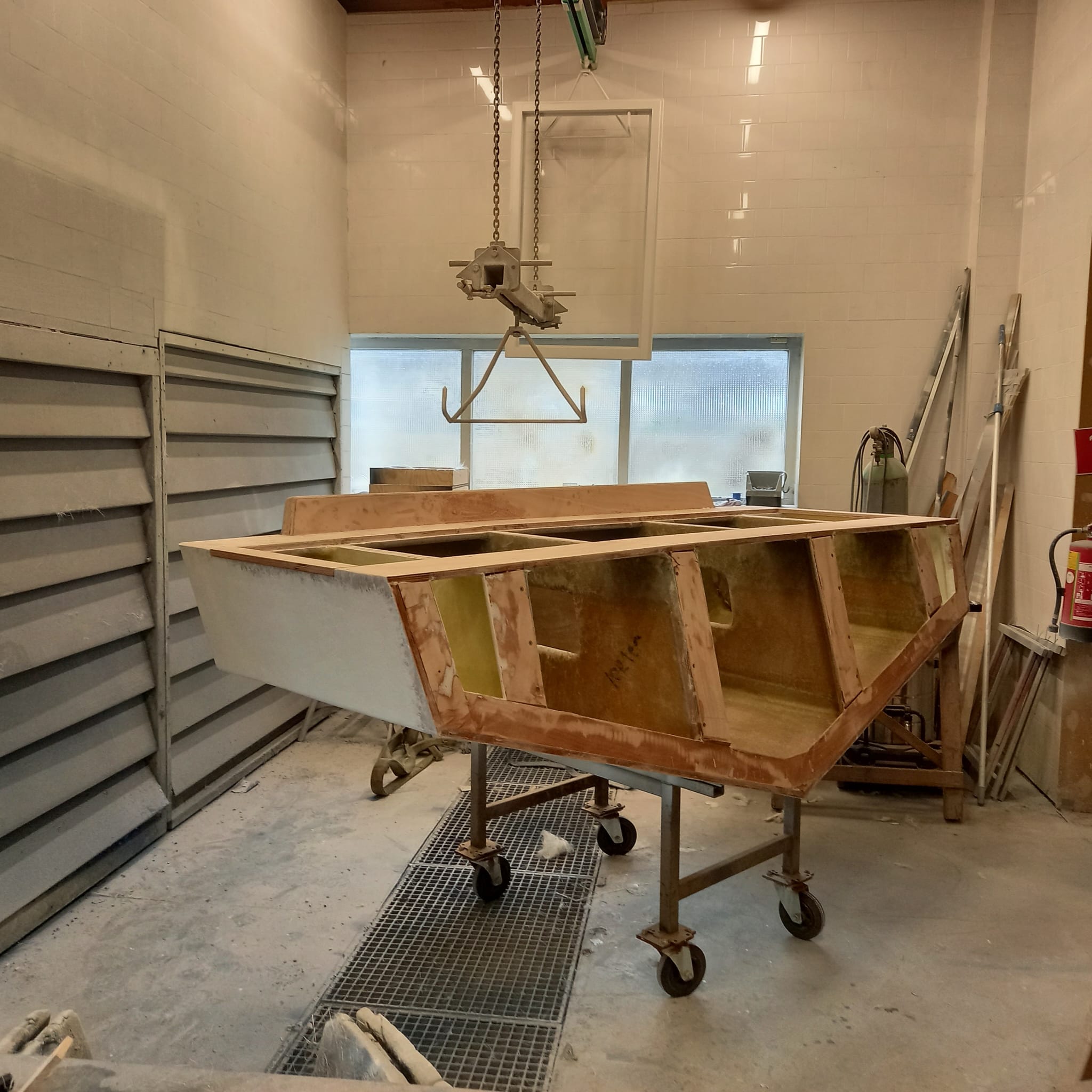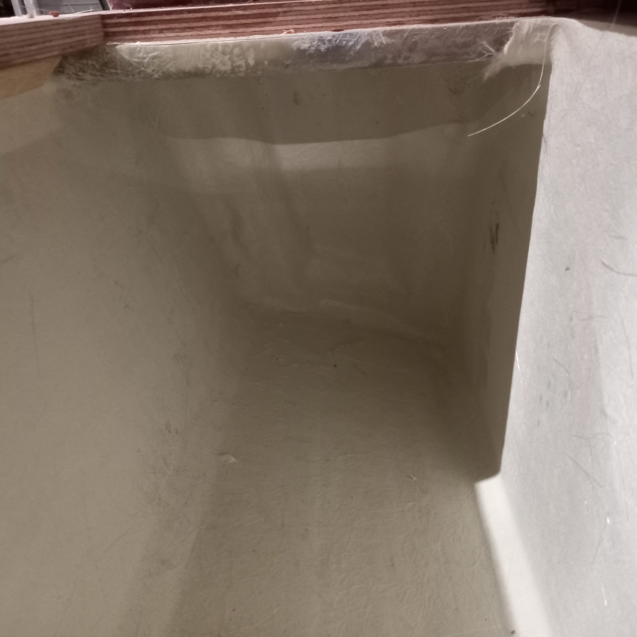 - Herstel: Gaten moeten worden opgevuld met glasvezel en polyesterhars. Het beschadigde gebied wordt eerst geschuurd om een schone, ruwe oppervlakte te verkrijgen. Daarna wordt een glasvezelmat in meerdere lagen aangebracht en met polyesterhars geïmpregneerd. Na uitharding wordt het oppervlak geschuurd, geplamuurd en afgewerkt met gelcoat.
